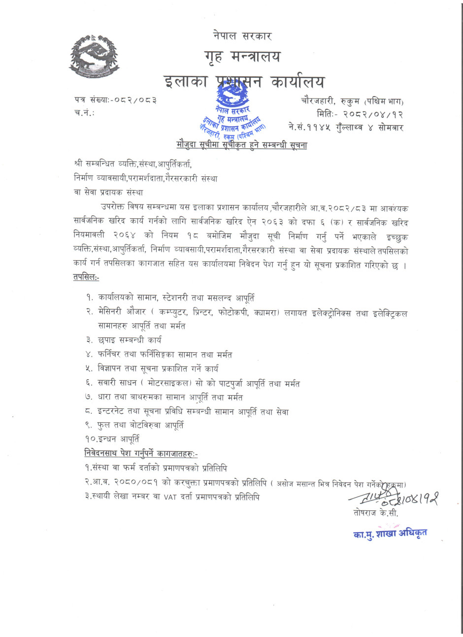 © सर्वाधिकार सुरक्षित इलाका प्रशासन कार्यालय,चौरजहारी,रुकुम(पश्चिम भाग)